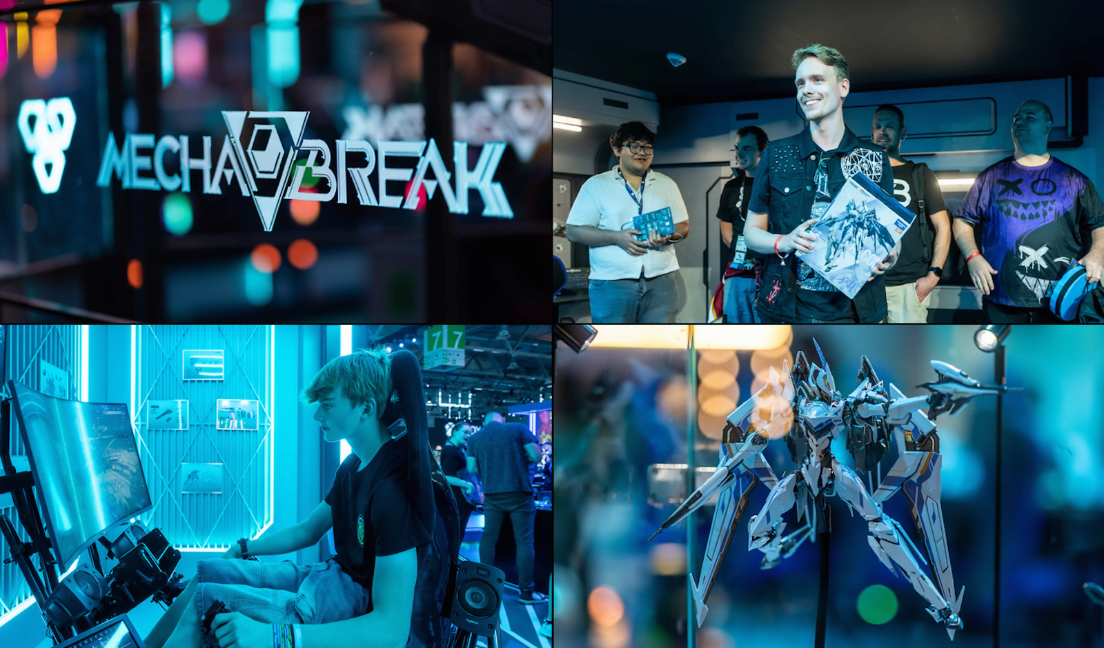 EIDETIC designed the Mecha BREAK booth as a cybernetic hangar to reflect the game’s sci-fi and mecha-shooter identity. With custom weapon props, intricate motifs, and thematic decorations, the entire booth embodied the world of mecha. A full-scale cockpit simulator offered participants an immersive experience of piloting their own mech, earning praise as “one of the most impressive booths at Gamescom.” To highlight the game’s strategic PvPvE battles, a dedicated arena was created, delivering thrilling live matches. The front-facing LED screens broadcasted the action in real time, drawing in large crowds of spectators.